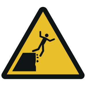 • Sicherheitszeichen zur Anwendung in Arbeitsstätten und öffentlichen Bereichen. Weist darauf hin, dass beim Betreten des Bereiches Absturzgefahr besteht.